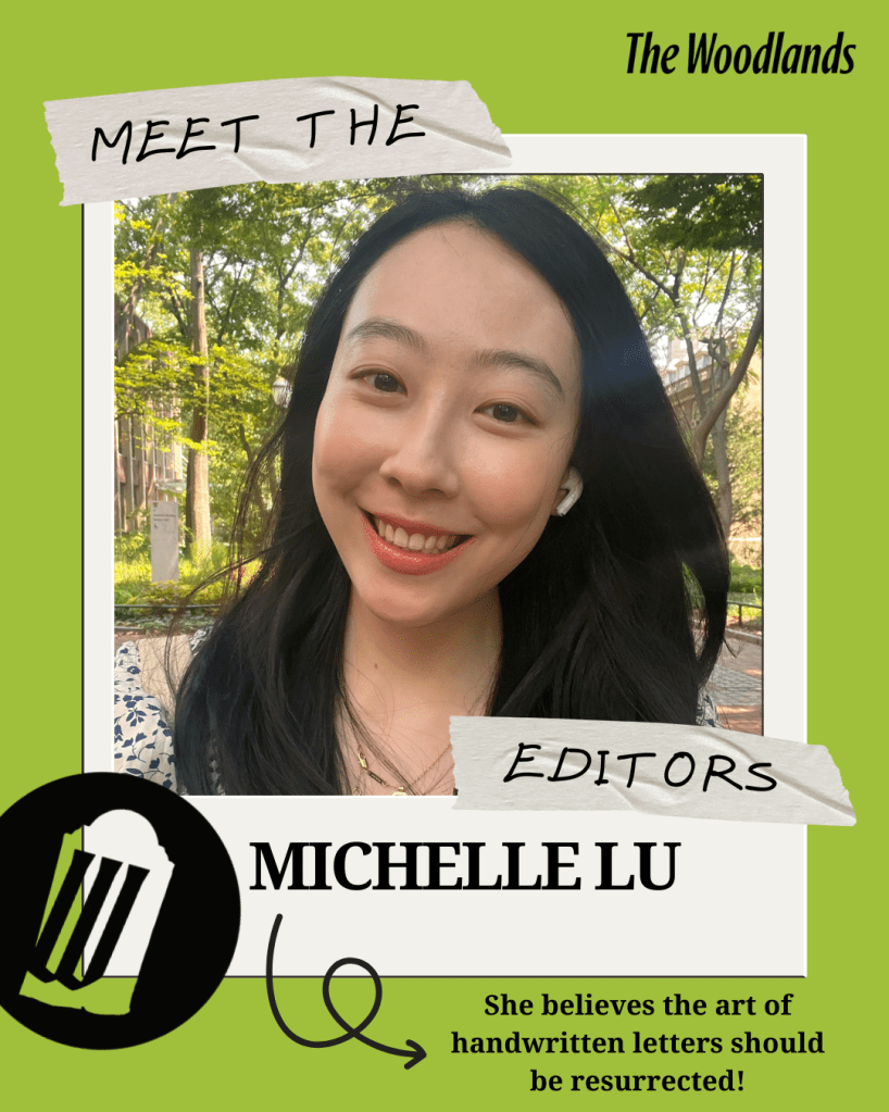 The Woodlands Magazine rose from the hard-packed ground of The Woodlands Cemetery, a historically-steeped refuge from the corporate bustle of Penn life. It rose from ten bodies huddled in a circle on the steps of Hamilton Mansion, talking about death; from three girls flailing mallets through a homemade croquet game, dressed (sort of) like Jane Austen characters; from first date walks and well-loved books and earth-shaking cries. This magazine is a textual version of youth experiences: a haven for breakthroughs and respite, a chronicle of stories that are specific to place, but also true to life.
